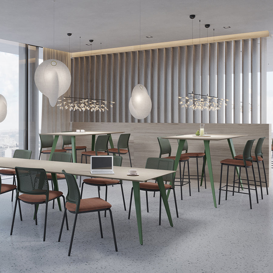 The unique design features a robust, perforated backrest and rolled, waterfall edges to create a seating range that supports agile learning and working across different environments.